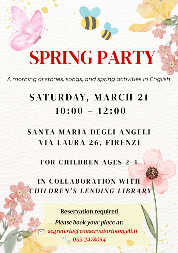 Sabato 21 marzo, dalle 10:00 alle 12:00, la Scuola Santa Maria degli Angeli apre le sue porte ai più piccoli per uno speciale Spring Party.