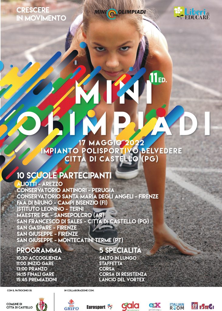 La manifestazione si svolgerà insieme ad altre nove scuole del centro Italia aderenti al progetto nell’impianto di atletica leggera di Città di Castello (Perugia) nella giornata di martedì 17 maggio.